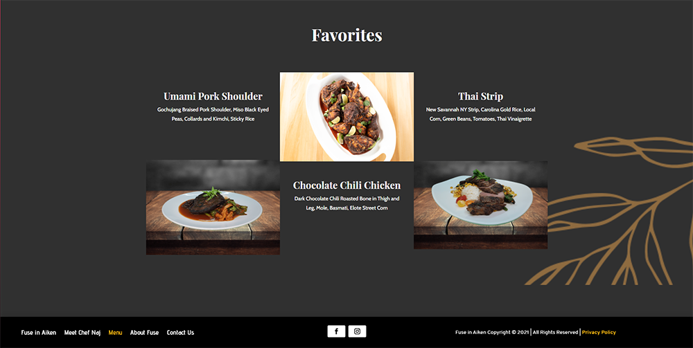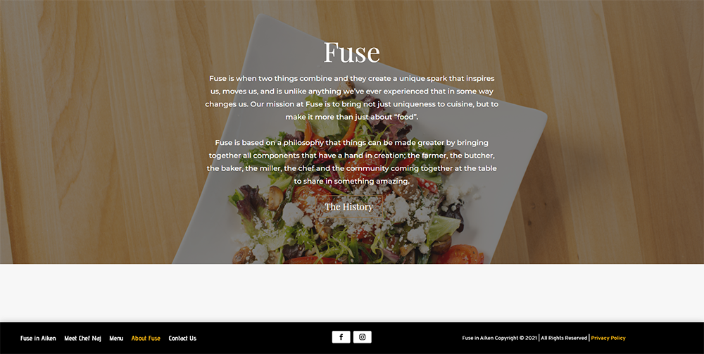 Fuse came to us with a different problem than most. They decided to shut down their Augusta restaurant in early 2020 to create a different dining experience in the Aiken community. They were fairly certain their faithful followers would join them in their quest to continue their Nose to Tail philosophy with food. Their master chef, Chef Naj's charisma in revitalizing the Fuse name keeping its former glory while sparking some of the unique flare he has to offer, was vital for this project to succeed.