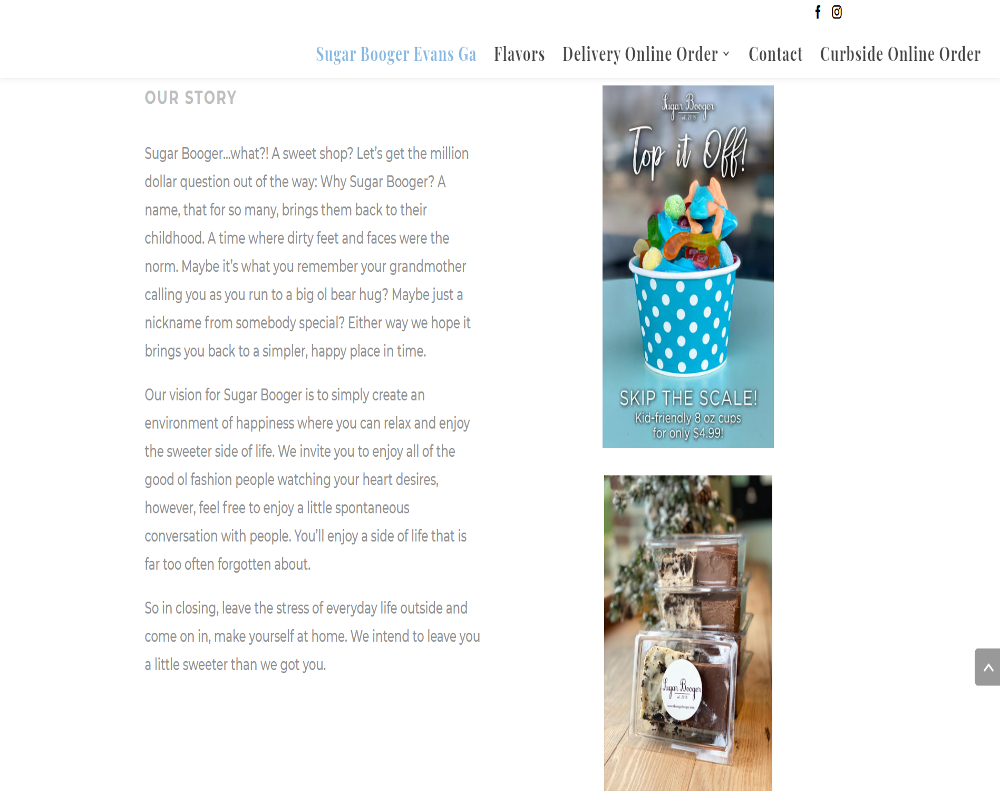 Formerly known as Yotopia Frozen Sweets and Treats, the owners decided to take the old franchise and redo everything that it was once known for. Instead of selling just frozen desserts they wanted to be able to sell any sweet treat that they wanted, and thus the Sugar Booger was born. Being that InnoVationV had a great working relationship with Yotopia it was an easy transition as we redesigned it to fit the new Sugar Booger brand.